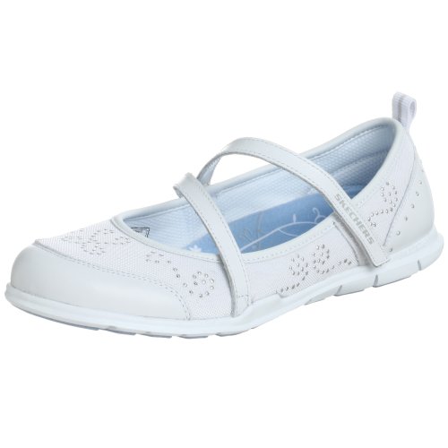 What could be chicer and more perfect for spring than this sporty little sneak from Skechers? Constructed with a durable and breathable leather and mesh upper, this cute Mary Jane-style shoe features stitching, overlay on the toe and heel, and mini sequin scrollwork details. Comfort features include a Velcro closure on the instep strap, a fully cushioned and perforated insole, and flexible traction sole.