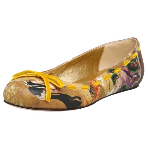 Decorated by Haruyo Morita's Dance of Cranes and featuring a hidden wedge heel, this casual flat from Icon will add artful beauty and complete ease to your stride. The comfort factor is increased by a lightly padded insole, while the print is enhanced by a coordinating velvet ribbon.
