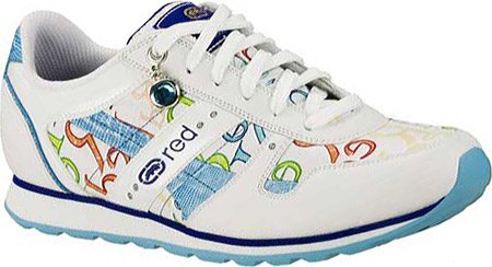 The fanciful Women's Blue Somatic Sneakers from Rhino Red are sure to put a spring in your step. Brightly-colored letters dance on the leather uppers of the shoe, and the durable rubber sole has a contrasting, vibrant color of its own. Wear them on the street, in your backyard, or for casual days at the office -- and bring a little sunshine to your world.