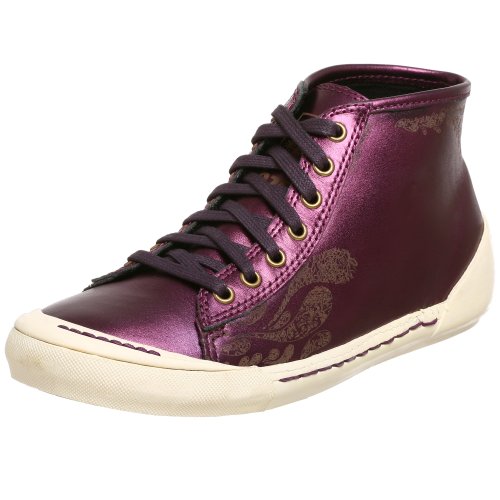 Jump deserves a round of applause with this shimmery, showy high-top, perfect for pairing with a short skirt and some colorful tights. Part sneaker, part boot, this playful design features a colorful metallic leather upper with a full lace-up front and pretty paisley design etched into the side. The rubber-capped heel and toe bumper provide protection and durability, while the thick midsole and treaded bottom offer shock absorption and slip-resistance for easy, comfortable walking.