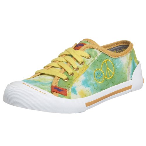 You can't help but smile every time you slip into the Jiggle sneaker from Rocket Dog. The colorful print, low profile, and easy-going sneaker style will liven up your casual attire, especially with the peace logo and happy face embroidered on the side.