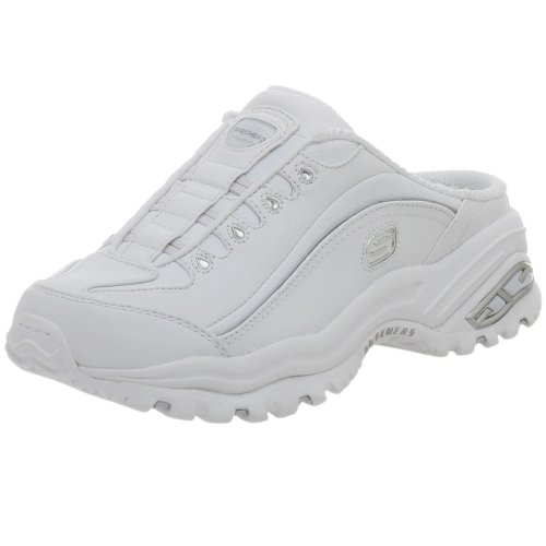 Bustle around town in style in the Recreation mule sneaker from Skechers Premium. It features a leather and manmade upper with a sleek, low-profile design, rhinestone-accented eyelets, and a self-contained, elasticized slip-on closure. Your comfort is well-provided for, too, with its thickly padded collar, tongue, and insole, breathable mesh lining, and supportive, cushioning outsole.