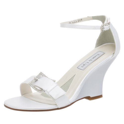 Made from a special dyeable satin fabric, this contemporary wedge sandal can be dyed to perfectly match a bridesmaid dress or prom gown. The Shakira features a faux diamond-encrusted buckle detail on the vamp and matching buckle on the adjustable ankle strap. The full cup heel provides a secure fit, while the padded footbed offers continuous comfort on the dance floor.