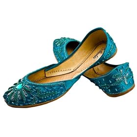 Beautifully Designed Ladies handmade embroidered Sequin leather Ballerina style Khussa Shoes / Pumps in a beautiful Turquoise (Blue) colour. Elegant design with gems, pearls and decorative beaded work and encrusted beautiful diamantes. These Ladies Leather Pumps are ideal for Weddings, Evening Wear, Special Occasions and Casual Wear as well.