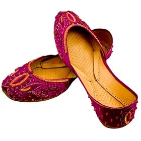 Beautifully Designed Ladies handmade embroidered Sequin leather Ballerina style Khussa Shoes / Pumps in a beautiful Magenta colour. Elegant design with gems, pearls and decorative beaded work and encrusted beautiful diamantes. These Ladies Leather Pumps are ideal for Weddings, Evening Wear, Special Occasions and Casual Wear as well.