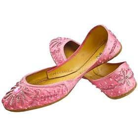 Beautifully Designed Ladies handmade embroidered Sequin leather Ballerina style Khussa Shoes / Pumps in a beautiful Pink colour. Elegant design with gems, pearls and decorative beaded work and encrusted beautiful diamantes. These Ladies Leather Pumps are ideal for Weddings, Evening Wear, Special Occasions and Casual Wear as well.